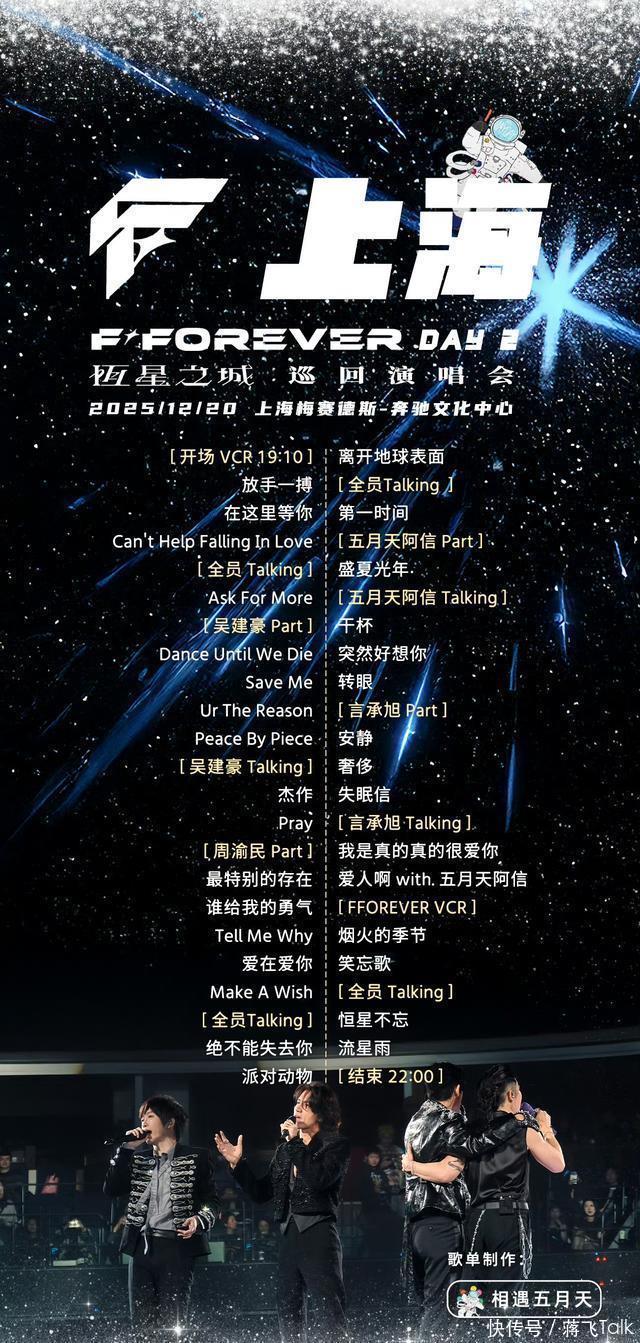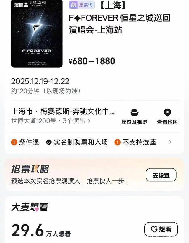 多重压力下,阿信健康状况引发粉丝担忧。 巡演以“F·FOREVER”为名,弱化F4标签,强调“信仰与友情”。因原成员朱孝天缺席,阿信紧急补位并重新设计演出方案,四万张门秒售罄,凸显情怀经济效应。